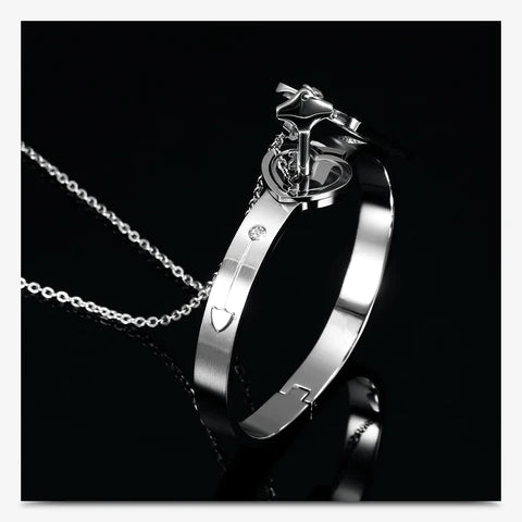 The necklace & bracelet set is made with premium stainless steel, and comes with an unique Lock & Key. A heartwarming gift that shows them that you care..